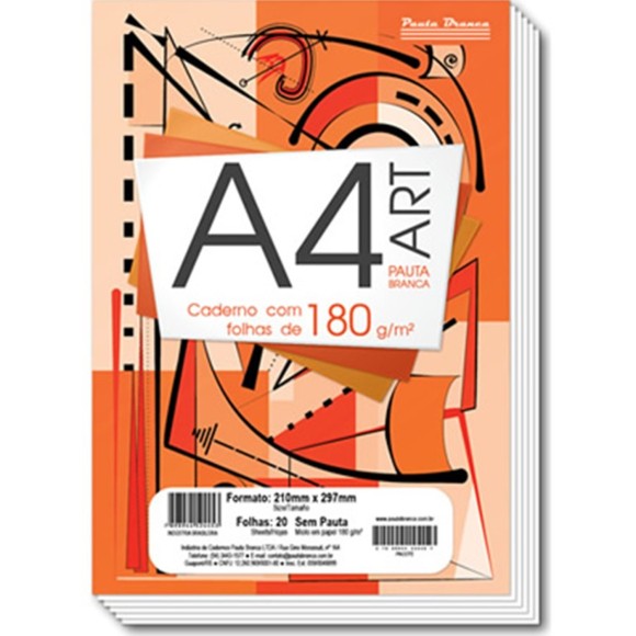 BLOCO DE DESENHO A4 180G 20 FOLHAS PAUTA BRANCA - BRANCO