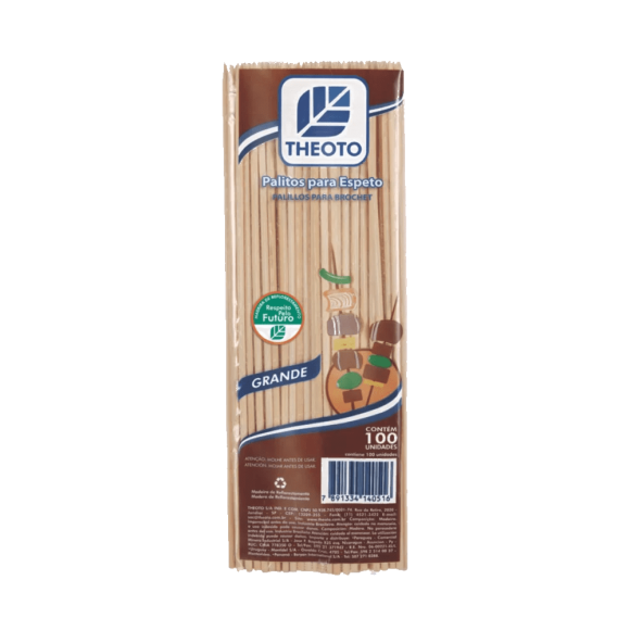 Espeto de Madeira 25cm Theoto 100 Unidades.